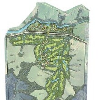 It features an 18-hole championship golf course, practice facilities, tennis courts, clubhouse, lodge, chalets and residential sections.Set in north facing almost ampitheatre landscape of hillsides with expansive views, natural rivers, streams, waterfalls, wetlands and native trees.
