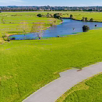 Highlights include lakefront lots, 2 lots next to a natural pond, stone entry walls echoing the nearby historic Stone Store, and native Totara timber gates by local craftsmen. The entry road is adorned with over 400 native trees and shrubs.